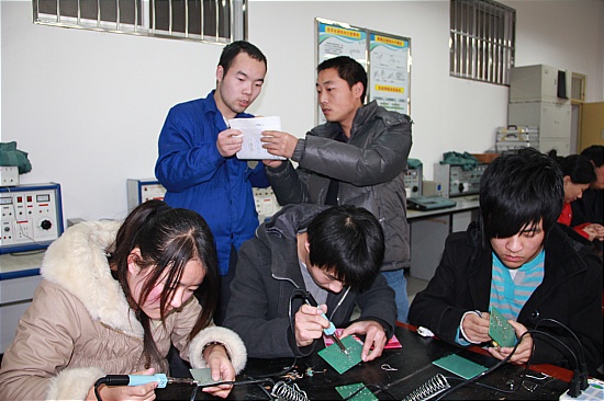 本次培训主要有焊接技能的培训和强化;仪器仪表设备的使用;稳压电源的制作与调试;分压式偏置放大电路、晶闸管调光台灯与555定时器的制作等内容。此次培训将进一步提高教学质量和学生的动手能力。