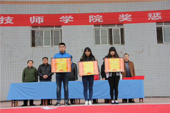 12日下午,学院在体育场召开学生奖惩大会。会上,学生处、团委对先进集体、优秀学生干部、三好学生,对先进团支部、优秀团干部、优秀团员予以表彰奖励,对违反校纪校规的学生进行了处理。学习了《冬季安全管理制度》、《公寓协管制度》和《公寓纪律管理规定》等规章制度。