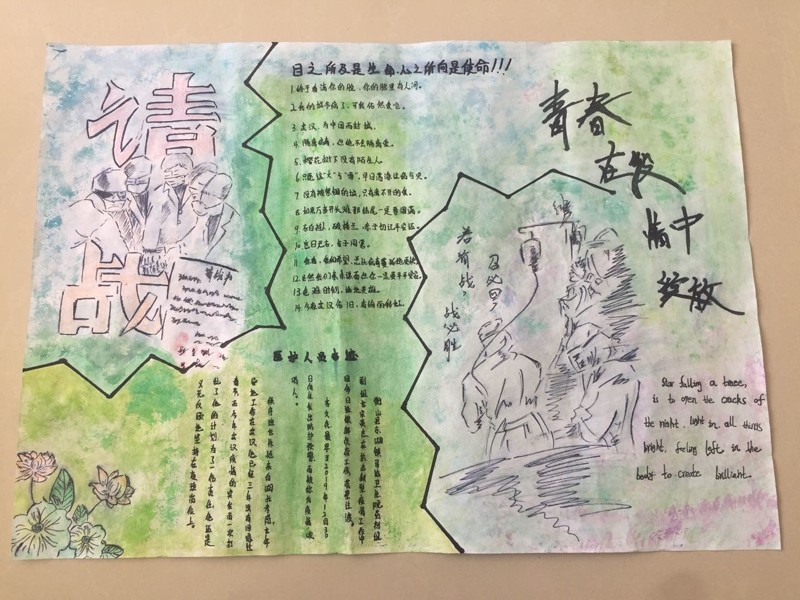 近日,院团委举办“青春在战役中绽放”主题手抄报活动,学习抗疫英雄坚定理想信念、不惧艰险、冲锋在前的崇高精神和厚植的爱国主义情怀。