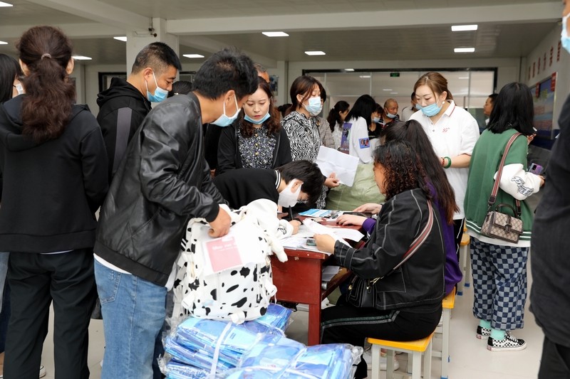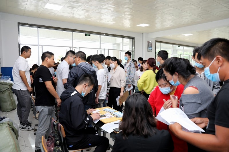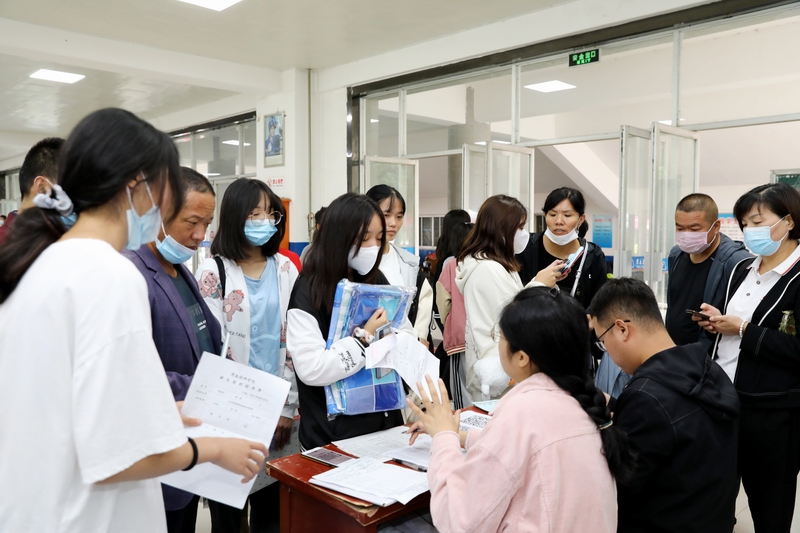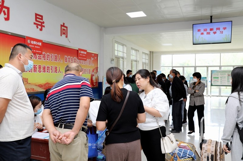 校园内人头攒动,车流如织,一派热闹景象。学生志愿者、教职员工热情接待每一位新生,介绍学校情况。班主任教师热情耐心解答新生及家长问题,帮助新生迅速完成报到手续。