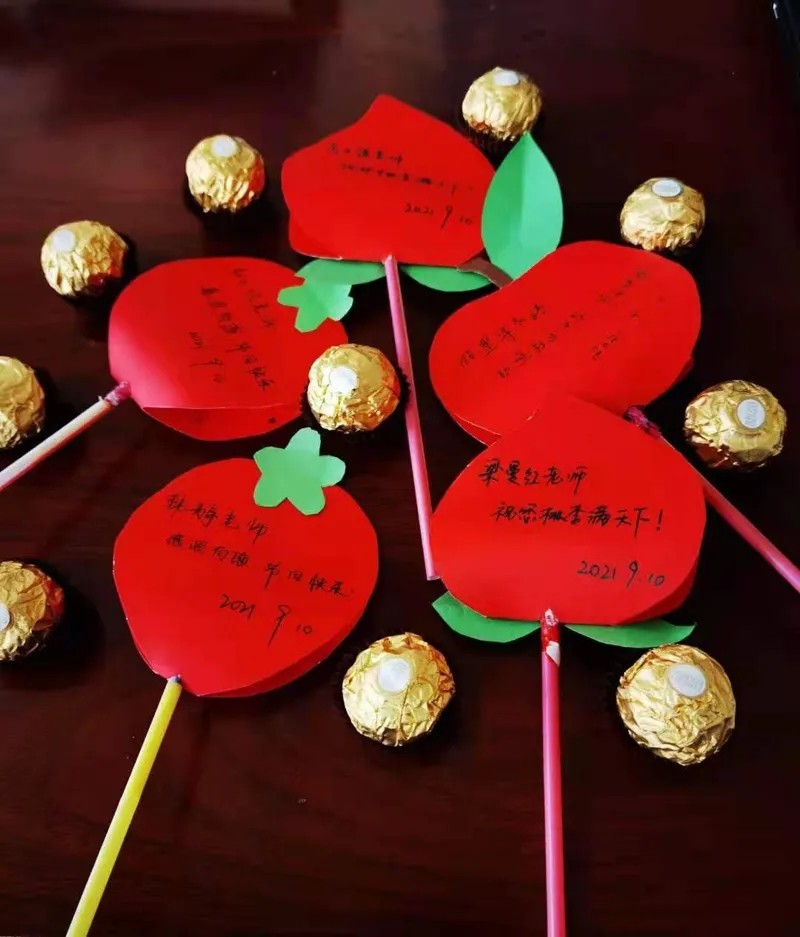 一张精美的小卡片 传递着浓浓的敬意 句句动听的话语 让老师们动容 …… 9月10日,在第37个教师节,为表达对老师们的深深敬意,现代服务系幼师班的学生们自己动手,为全院老师制作了精美的手工礼物, 为老师送上了真挚祝福。学生们画、剪、粘、写祝福语,每一个步骤都一丝不苟,把对老师的深深祝福、浓浓爱意融入到了细心的制作当中。