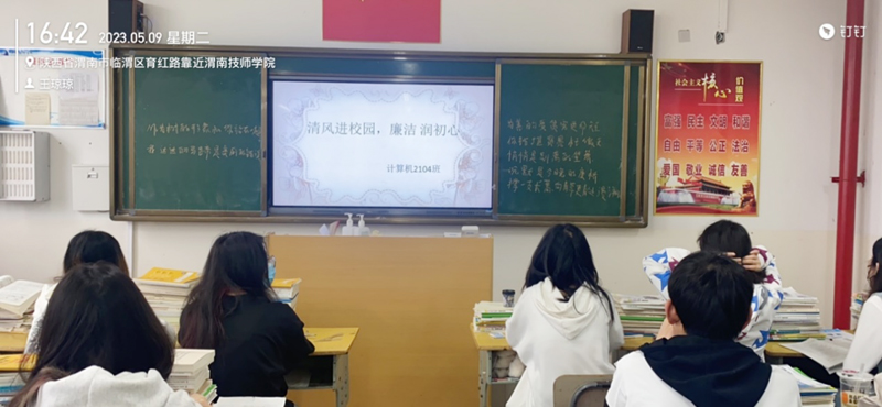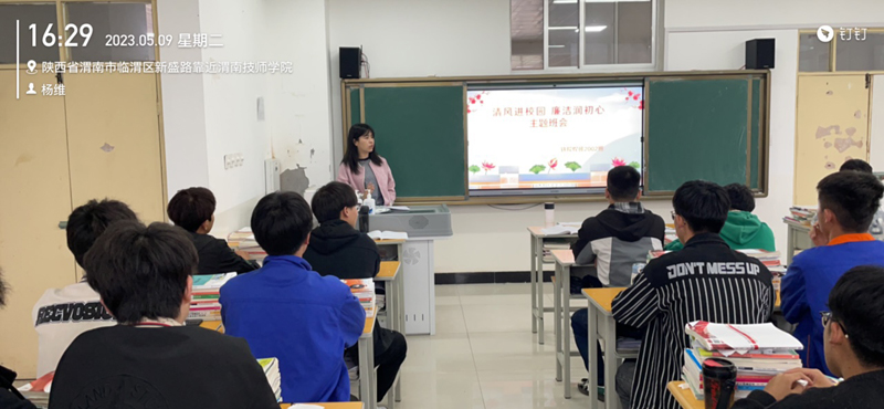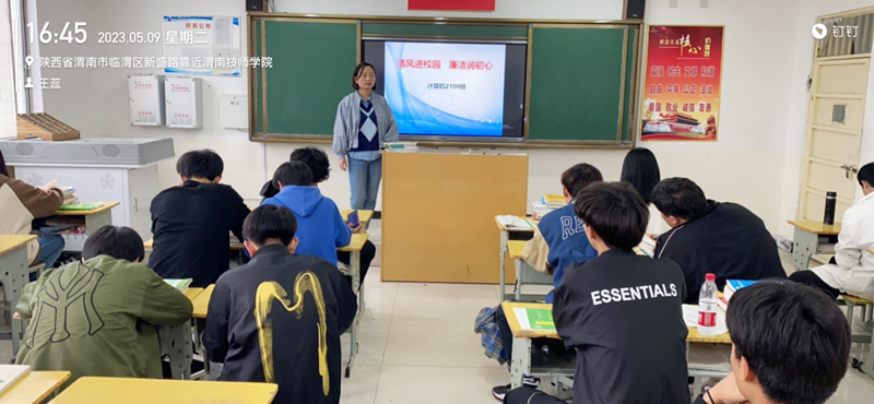 班会课上,各班主任结合学院纪律检查室下发的《清风入校园 上好第一课》——渭南技师学院廉洁教育读本,通过分享廉洁教育故事、诵读廉洁教育诗词、歌唱廉洁教育歌曲、观看廉洁教育视频等形式多样的教育活动,从明理出发,向学生讲解什么是“清廉”,生动形象地展示了清廉文化的来源与发展,使学生明白“清廉”不仅仅是大人的事情,也与广大青少年息息相关,并要求学生将对“清廉”的认识传达给家长,共同营造清廉家风,同时让学生明确廉洁在学生行为中的体现,即学习不懈怠、考试不作弊、生活不浪费、言行不违纪,帮助学生树立“廉洁光荣,腐败可耻”的理念,使学生在丰富多彩的活动中不断增强认知能力,感受清廉文化,树立清廉意识。