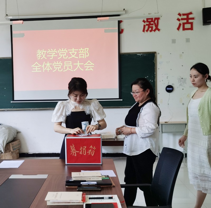 5月19日下午,在第73个国际儿童节来临之际,教学党支部书记杨亚楠、支委杨永带领教学支部党员走进高新区胜利聋儿特教学校,开展“同心追梦 助力成长”主题党日活动。 为了更好的开展此项活动,教学党支部全体党员精心准备,倡议全体党员进行募捐,为“结扶帮对”学生送温暖,献爱心。