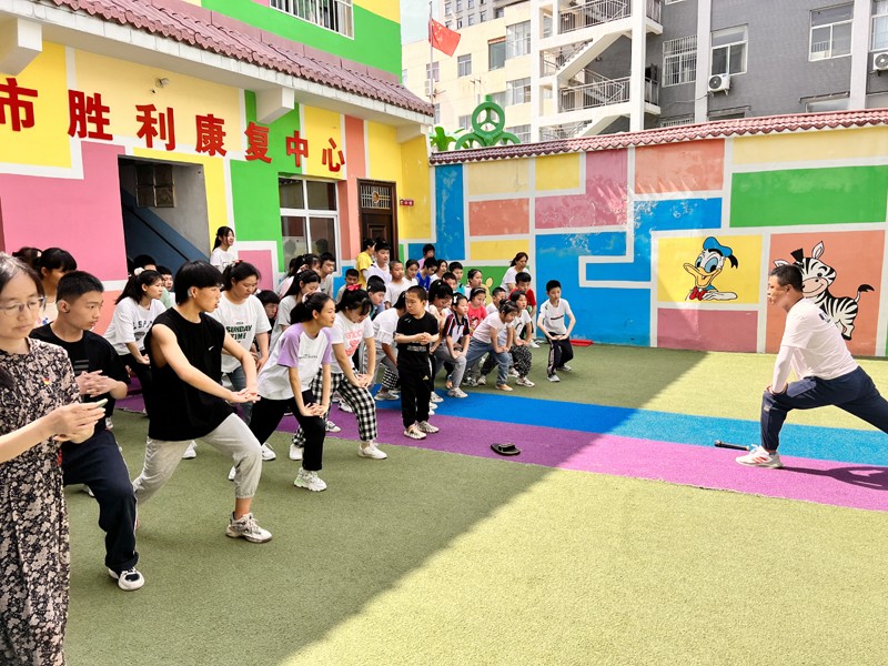 活动中,教学党支部体育教研室的党员教师为聋哑学校的孩子们展现了一堂丰富多彩的体育示范课,现场指导孩子们如何正确进行运动前热身和规范进行乒乓球运动。课堂上,孩子们积极互动、兴趣浓厚、欢声笑语,脸上洋溢着欢快的笑容。