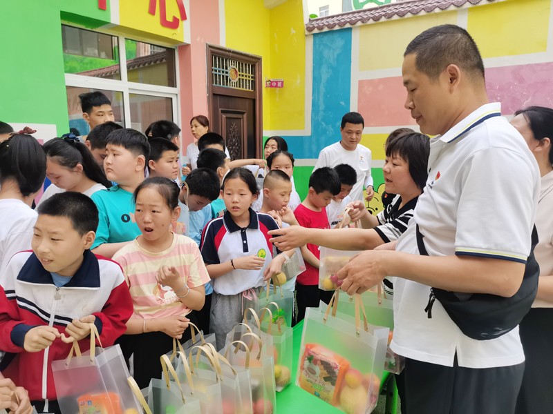 接着,党员志愿者们把水果、食品发放到每一位孩子的手中。当看到孩子们灿烂的笑脸和一双双期待的眼睛,我们心里充满了使命和责任,更加意识到这次活动不光是一次党员志愿活动,更是一次心与心的碰撞、一次温暖的互动。