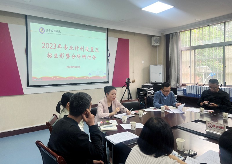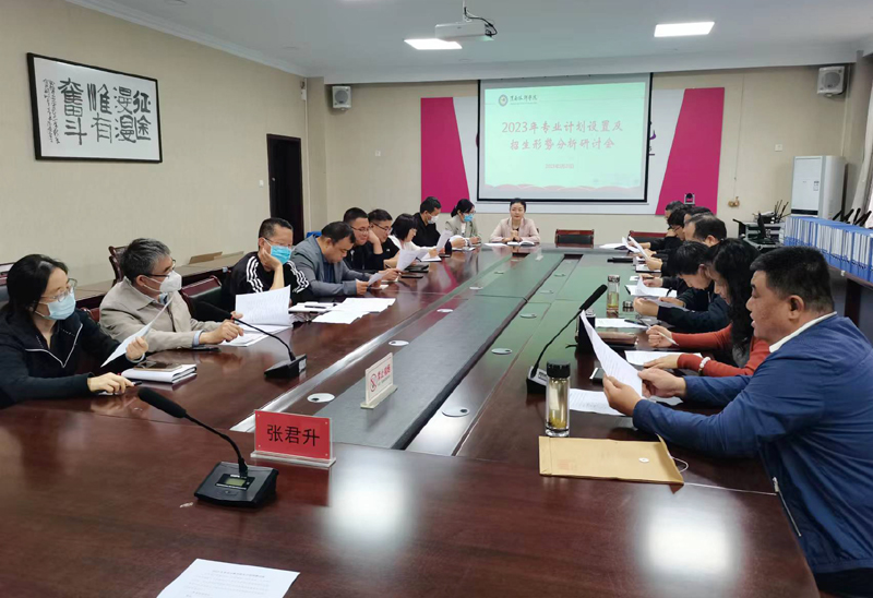 为落实学院提出的“巩固规模,提高质量,打造特色”的办学思路,充分做好2023年秋季招生分析研判工作,5月26日上午,学院组织召开了“2023年专业设置及招生形势分析研讨会”,招生就业处、教务处、4个教学系、生产实训处负责人和部分骨干教师参与了研讨,会议由院党委副书记、院长张君升主持。