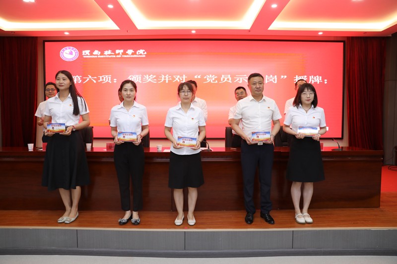 会上,党委书记曲志勇带领学院全体党员集体重温入党誓词,并学习了习近平总书记重要讲话《健全全面从严治党体系 推动新时代党的建设新的伟大工程向纵深发展》。党委副书记、院长张君升宣读了《中共渭南技师学院委员会关于表彰先进党支部、优秀党务工作者和优秀共产党员的决定》。党委委员、纪委书记蔡小伦宣读了《中共渭南技师学院委员会关于授予陈瑶瑶等18名同志“党员示范岗”称号的决定》。随后,院领导向受表彰的党支部及个人颁奖,并为“党员示范岗”授牌。