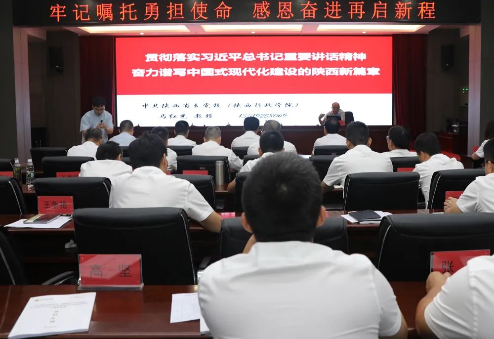 陕西省委党校管理学部马红光教授以《贯彻落实习近平总书记重要讲话精神,奋力谱写中国式现代化建设的陕西新篇章》为题,重点围绕习近平总书记历次来陕考察重要讲话重要指示,从“科技创新引领经济高质量发展、城乡区域协调促进共同富裕、绿色低碳转型提升生态文明水平、扩大开放打造内陆改革开放高地、弘扬延安精神夯实高质量发展保障”五个方面进行了专题授课,阐明了陕西在新征程上担负的使命、秉持的态度和奋斗的目标,既有理论高度,又有实践深度,内容丰富、深入浅出、系统全面、重点突出,含金量十足。