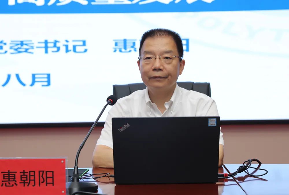 陕西工业职业技术学院党委书记惠朝阳以《把握大势,明确任务,履职尽责,努力促进职业教育高质量发展》为题,围绕习近平总书记关于职业教育工作的重要论述,从“把握职业教育发展大势、明确职业教育重点任务、履行立德树人根本职责”三个方面进行了专题授课,强调职业教育要坚持党建引领,强化思政育人,做到立足一个根本,紧抓两个群体,完善三个体系,体现“四种味道”,把握五大路径,阐释了职业教育事业发展中具有方向性、根本性、全局性的理论和实践问题。