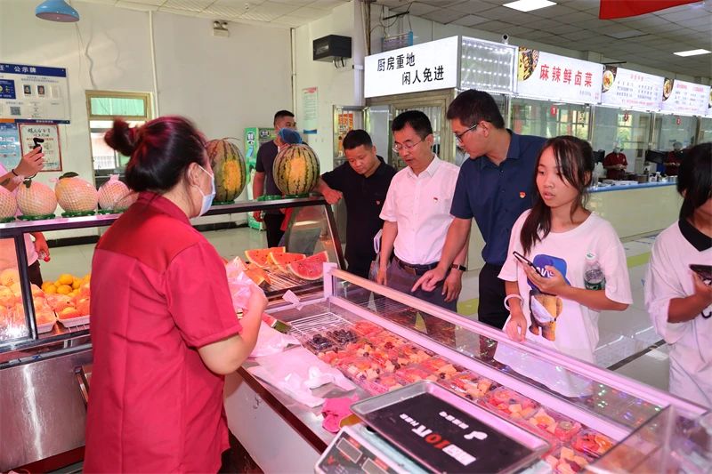 在学院食堂,张院长一行询问了工作人员食品采买、进货查验、食品贮存、加工制作、餐饮器具消杀等每个环节的情况,要求从思想上高度重视校园食品安全,树立安全无小事,责任大于天的意识。加强对管理及从业人员的考核和监督,从细节上精益求精,从源头上防范校园食品安全事故的发生,守护好学生们舌尖上的安全,让孩子们吃得安全、吃得放心、吃得健康。