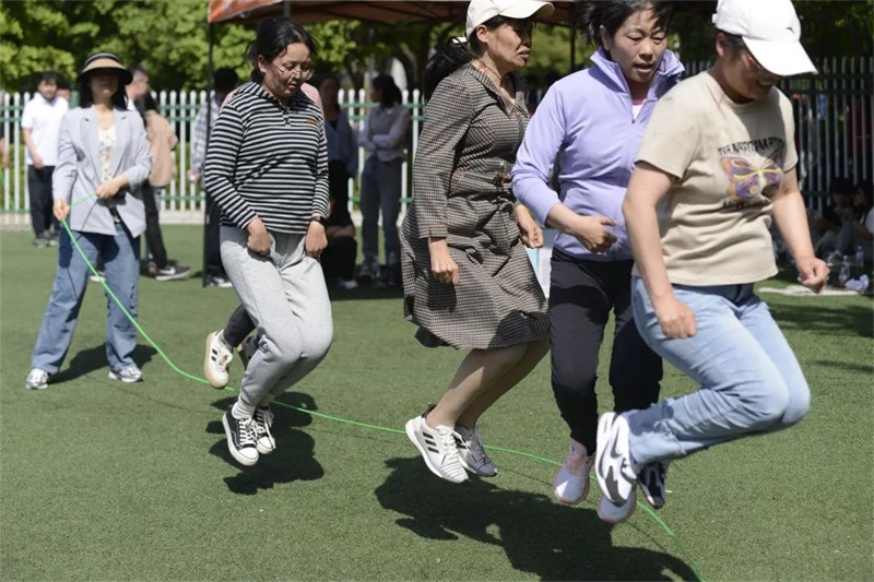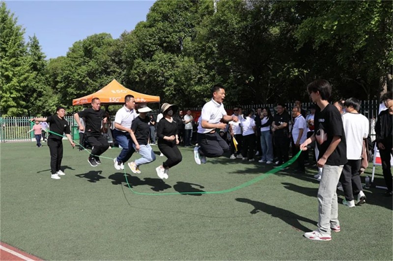 趣味运动会共设置了三项集体项目,“绑腿团体赛”、“百米接力赛”、“跳绳比赛”,院领导及各部门负责人带头参加。教职工们精神抖擞,充分发扬顽强拼搏、团结合作的精神,此起彼伏的掌声和欢呼声充满整个运动场。