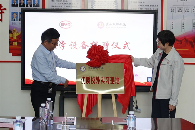 随后校企双方在产教融合大楼会议室举行了教学设备捐赠仪式,签订了校企战略合作协议,我院授予商洛比亚迪实业公司“优质校外实习基地”,在座谈交流中,双方回顾了我院与比亚迪近年来的合作历程,就毕业生就业、学生岗位实习、校企合作共建等方面深入探讨,充分交换了意见。