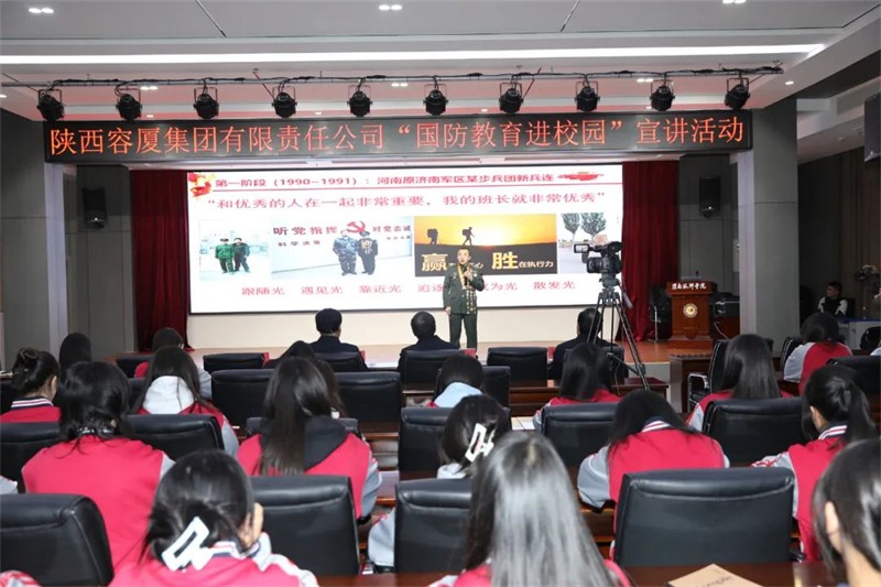 为进一步落实思想铸魂立德树人建设工程、以文化人校园文化建设工程,不断强化国防观念,厚植爱国情怀,12月3日下午,陕西容厦集团有限责任公司邀请原陆军某部一级军士长穆永厚在我院产教融合二楼报告厅举行“国防教育进校园”宣讲活动。学院党委书记曲志勇,党委副书记蔡小伦,陕西容厦集团有限责任公司党支部书记、董事长王友民,学院宣传部、马克思主义教研部部分老师,团委全体老师及团学干部代表共计150余人参加活动,此次活动由团委副书记杨晓琪主持。